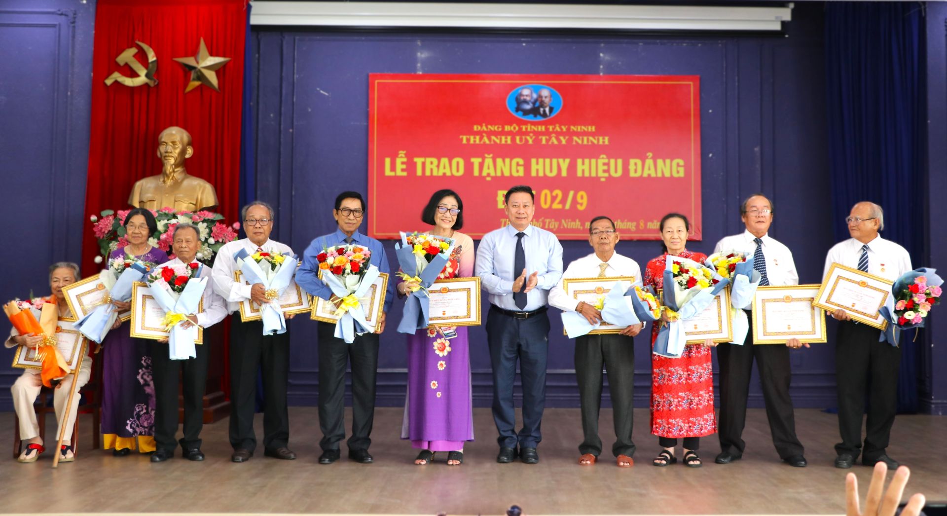 Chiều 29.8, Ban Thường vụ Thành uỷ Tây Ninh tổ chức lễ trao tặng Huy hiệu Đảng đợt 2.9 năm 2024. Dự lễ có Phó Bí thư Tỉnh uỷ, Chủ tịch UBND tỉnh Nguyễn Thanh Ngọc; Bí thư Thành uỷ Lê Minh Thế.