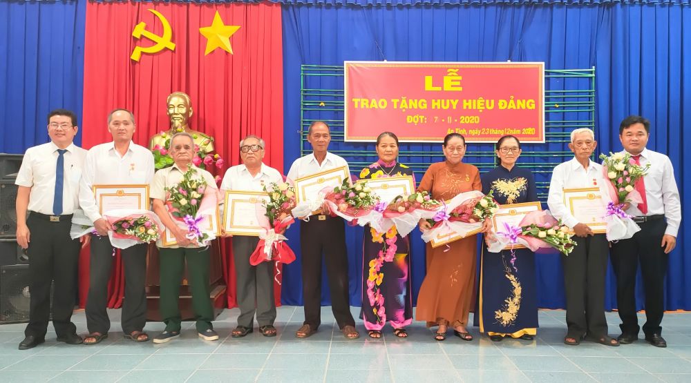 Huy hiệu 45 năm tuổi đảng được trao cho đảng viên Hồ Văn Sóc (sinh ngày 15.7.1947, quê quán xã Tân Phú, huyện Châu Thành, tỉnh An Giang); ông tham gia cách mạng từ năm 1971, được kết nạp vào Đảng Cộng sản Việt Nam ngày 20.9.1975).