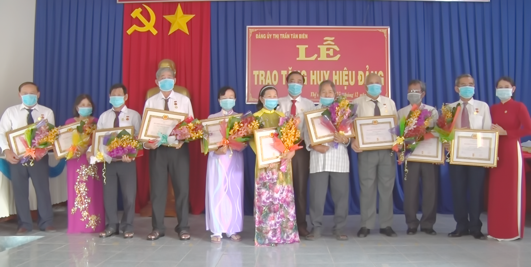 Huy hiệu 50 năm tuổi Đảng được trao cho 3 đảng viên: Hoàng Văn Châm (sinh ngày 13.10.1945, quê quán Phường Nam Đồng, Thành phố Hải Dương, tỉnh Hải Dương), hiện sinh hoạt tại chi bộ khu phố 3, Thị trấn Tân Biên); Trần Đức Nghinh (sinh năm 1947, quê quán xã Hòa Hâu, huyện Lý Nhân, tỉnh Nam Định), hiện sinh hoạt tại chi bộ khu phố 4, Thị trấn Tân Biên và đảng viên Nguyễn Duy Ước (sinh ngày 16.8.1952, quê quán xã Thái Sơn, huyện An Lão, Thành phố Hải Phòng, hiện sinh hoạt tại chi bộ khu phố 4, Đảng bộ Thị trấn Tân Biên.