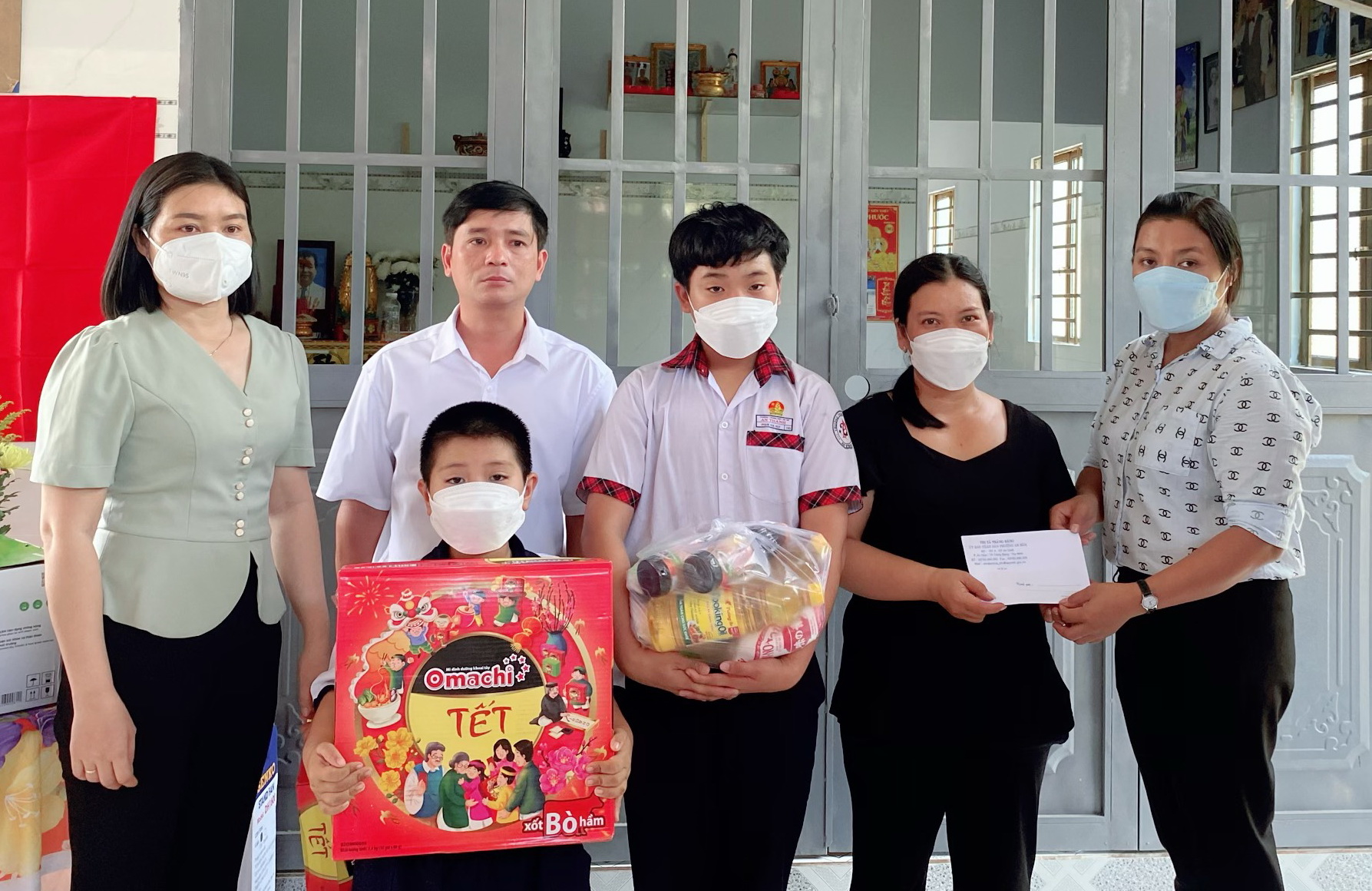 Chính quyền địa phương, mạnh thường quân và Hội LHPN phường An Hoà tặng quà cho gia đình chị Hà.