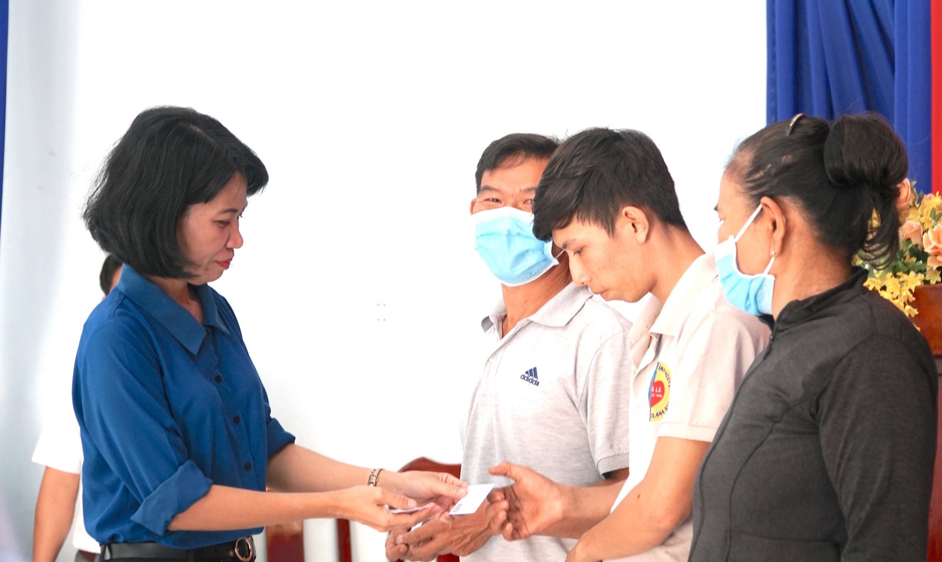 Bà Trần Thị Thu Hiền- Phó Chủ tịch UBND huyện Dương Minh Châu trao tặng thẻ BHYT cho người dân có hoàn cảnh khó khăn trên địa bàn xã Chà Là.