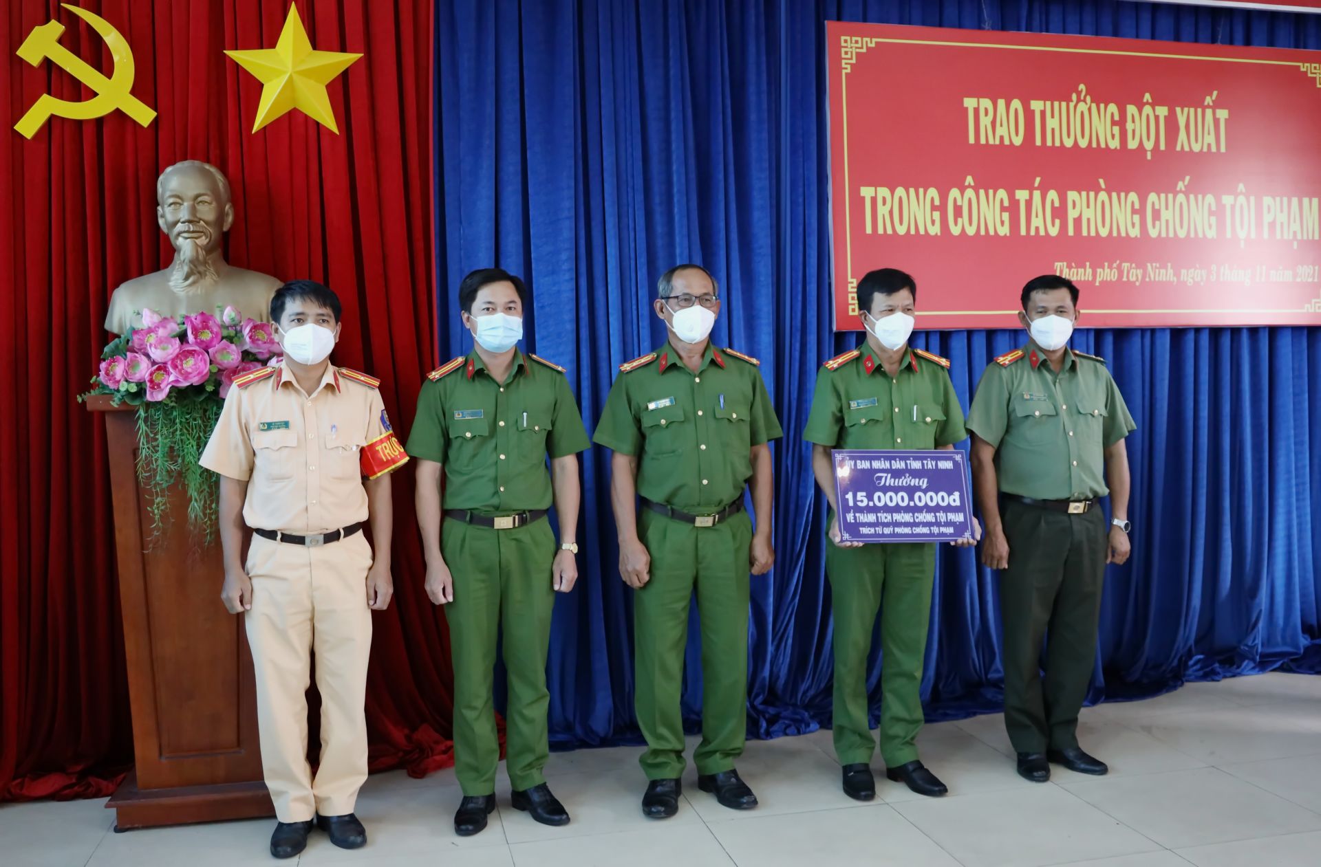 Phát biểu tại buổi lễ trao thưởng, Đại tá Lý Hồng Sinh- Phó Giám đốc Công an tỉnh biểu dương thành tích xuất sắc của cán bộ, chiến sĩ Công an thành phố Tây Ninh và trao thưởng 15.000.000 đồng của UBND tỉnh cho tập thể Công an thành phố Tây Ninh; yêu cầu trong thời gian tới tiếp tục phát huy thành tích đạt được, nêu cao tinh thần đấu tranh phòng, chống tội phạm và phòng, chống dịch bệnh Covid -19 trên địa bàn.