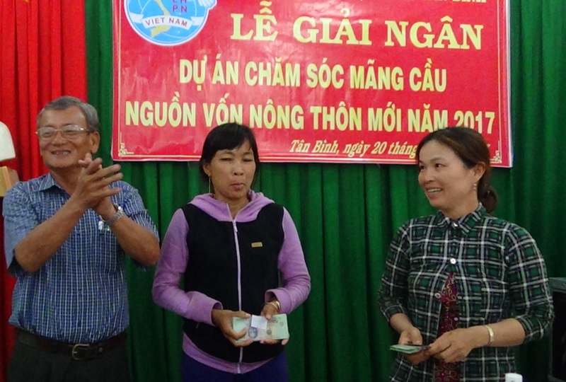Chiều ngày 20.11, UBND xã Tân Bình (thành phố Tây Ninh) phối hợp với Hội Liên hiệp phụ nữ xã giải ngân nguồn vốn đầu tư phát triển sản xuất, xây dựng nông thôn mới cho Dự án chăm sóc mãng cầu của Tổ hợp tác phụ nữ sản xuất mãng cầu ta ấp Tân Trung, xã Tân Bình (Tổ hợp tác).