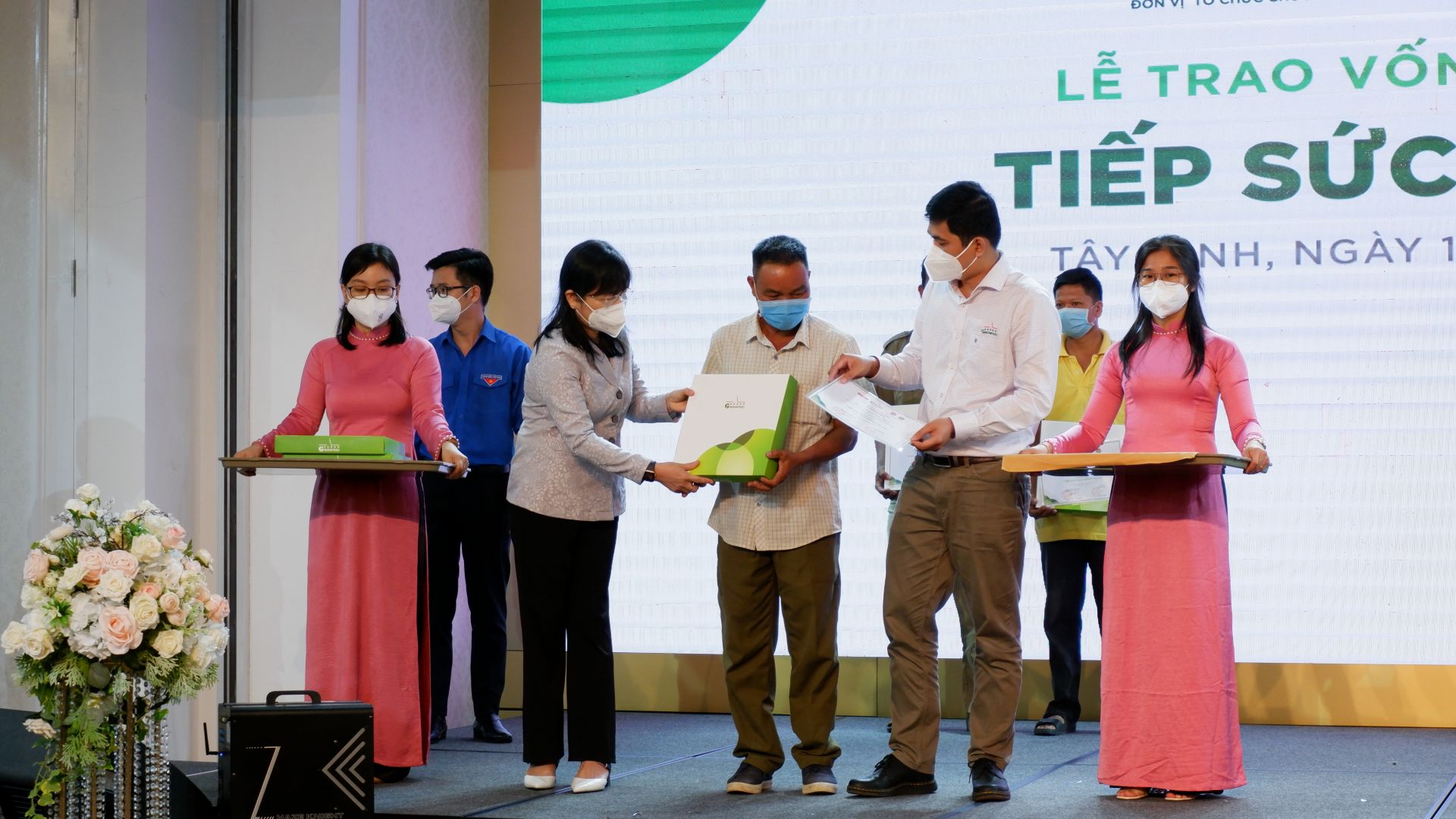 Chương trình “Tiếp sức nhà nông” sẽ hỗ trợ vốn vay không tính lãi suất trong thời gian 2 năm, với tổng trị giá 920 triệu đồng (gồm 800 triệu đồng tiền mặt và phiếu thức ăn chăn nuôi trị giá 120 triệu đồng) cho 40 hộ nông dân của 2 xã Thành Long và Ninh Điền, huyện Châu Thành. Những hộ nông dân được hỗ trợ vốn đều có hoàn cảnh khó khăn và có con em học giỏi.