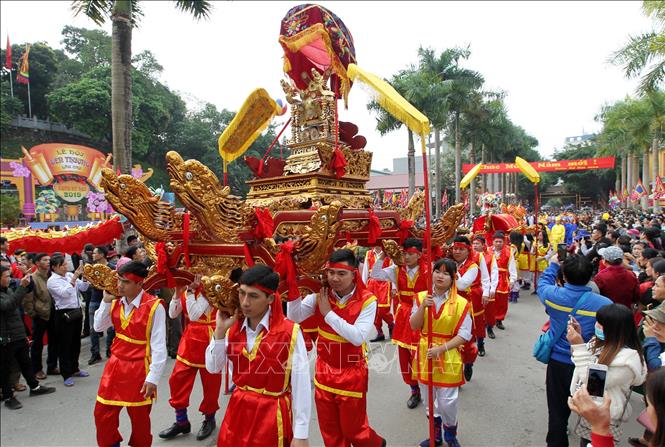 Lễ rước kiệu lên Đền Thượng. Ảnh: Quốc Khánh-TTXVN