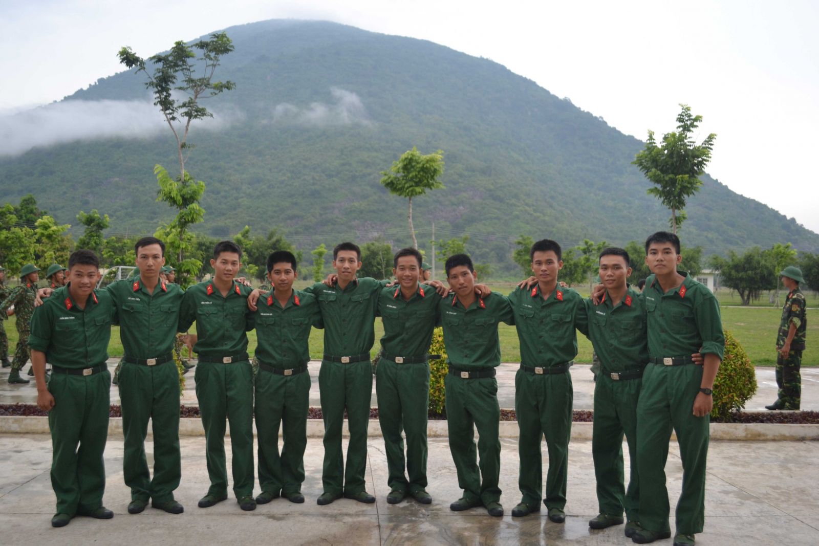 Từ trái qua: Trần Minh Thông, Võ Văn Điền chụp ảnh lưu niệm cùng đồng đội.