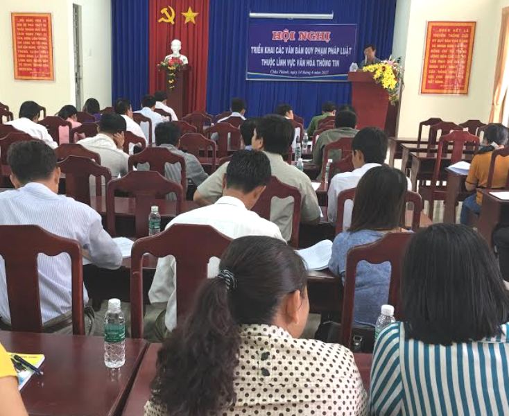 Ngày 14.6, tại huyện Châu Thành, Sở Văn hóa, Thể thao và Du lịch đã tổ chức triển khai các văn bản quy phạm pháp luật thuộc lĩnh vực văn hóa thông tin.