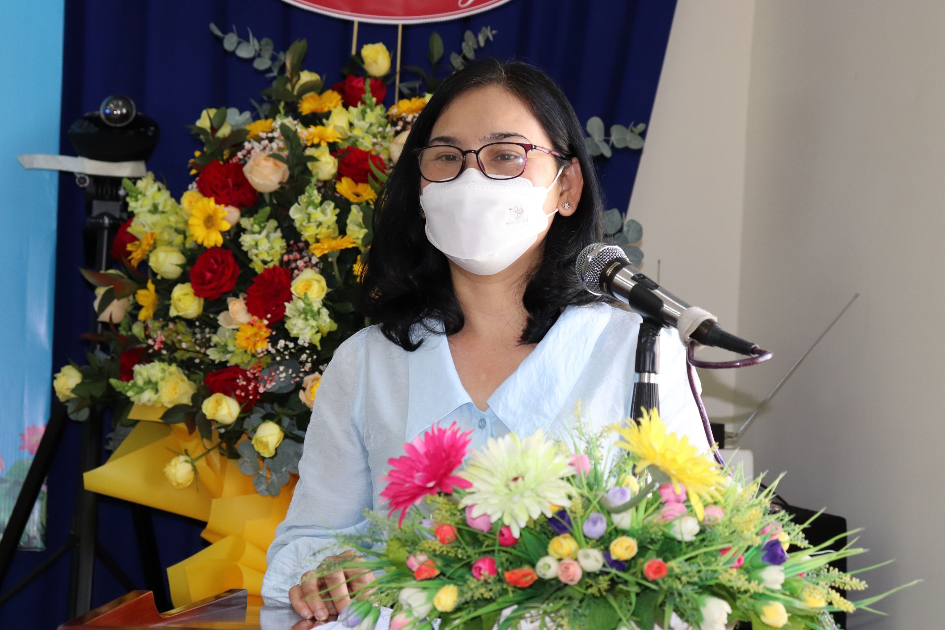 Bà Trần Thị Mỹ Linh - Tổng biên tập Báo Tây Ninh phát biểu ý kiến tại hội nghị.