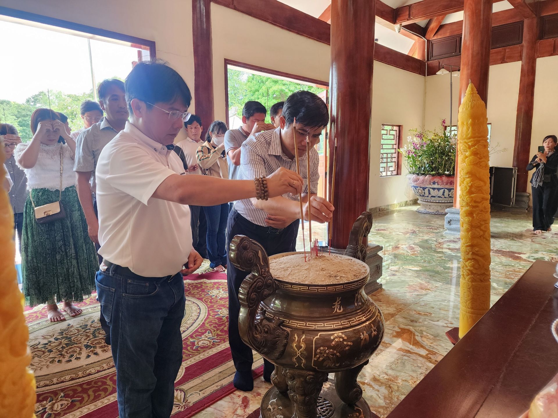 Đoàn khảo sát dâng hương tại Khu di tích quốc gia đặc biệt Bộ Chỉ huy miền Tà Thiết.