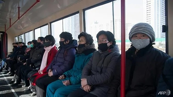 Người dân đeo khẩu trang trên tàu điện ở Bình Nhưỡng. Ảnh: AFP