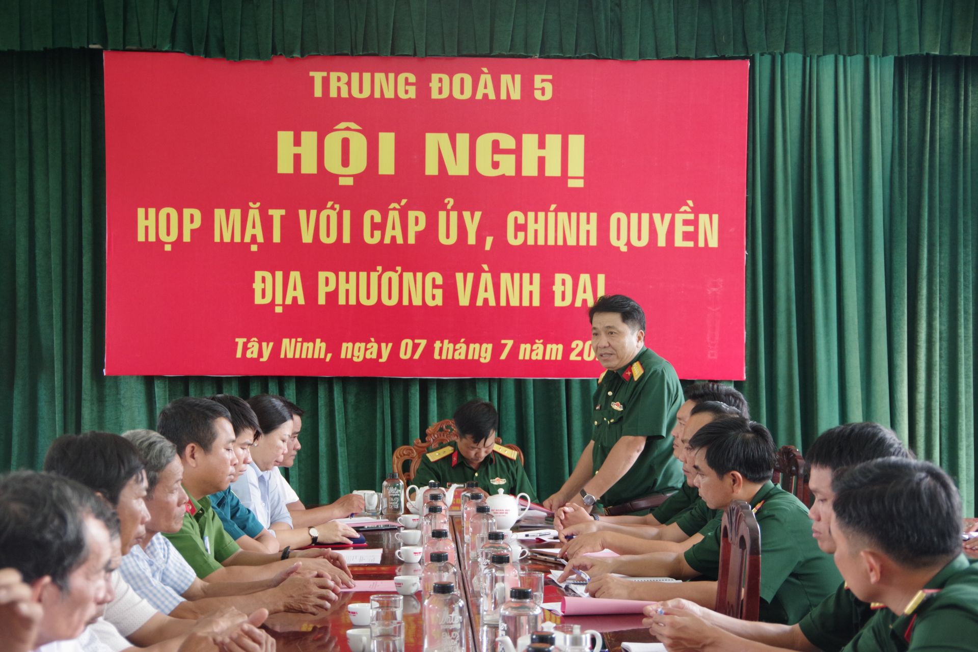 Chiều 7.7, Trung đoàn 5 (Sư đoàn 5) tổ chức hội nghị họp mặt với cấp ủy, chính quyền địa phương gồm các ấp: Suối Muồn, Tam Hạp, Suối Dộp (xã Thái Bình, huyện Châu Thành) và các đơn vị kết nghĩa trên địa bàn vành đai đơn vị đứng chân.