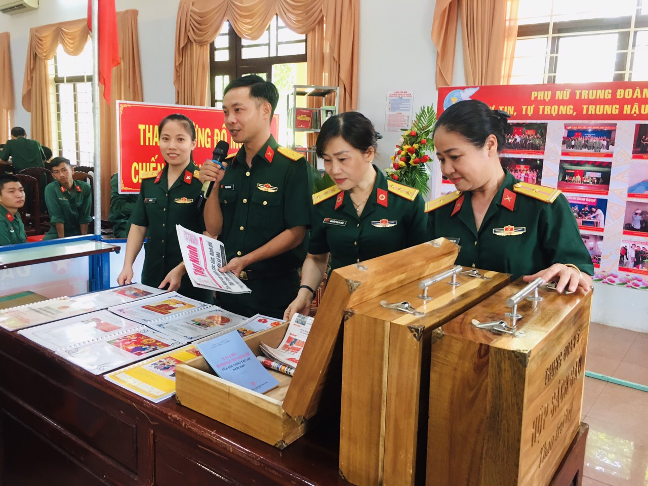 Cán bộ, ĐVTN, hội viên tham quan trưng bày hộp báo thao trường mới.