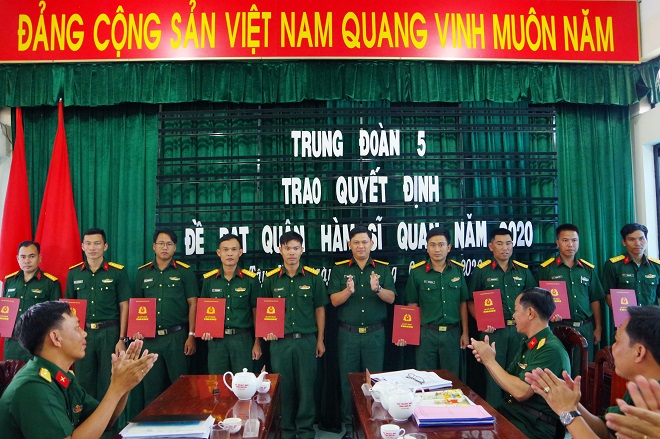 Chiều 01.6, thừa ủy quyền của Ban Thường vụ Đảng ủy Sư đoàn 5, Quân khu 7, Đảng ủy Trung đoàn 5 tổ chức trao quyết định đề bạt quân hàm sỹ quan năm 2020.