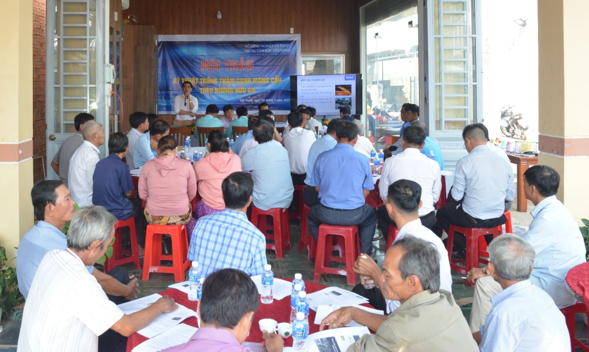 Tại hội thảo, Trung tâm Khuyến nông đánh giá tình hình sản xuất, tiêu thụ và cơ cấu giống mãng cầu trên địa bàn tỉnh. Hướng dẫn kỹ thuật canh tác như: thời vụ, mật độ trồng, kỹ thuật trồng, bón phân, tỉa cành và phòng trừ một số sâu bệnh gây hại chủ yếu trên cây mãng cầu; hướng dẫn kỹ thuật xử lý ra hoa đạt hiệu quả cao; các phương pháp chuyển đổi sang sản xuất cây mãng cầu theo hướng hữu cơ, giới thiệu về các tiêu chuẩn hữu cơ Việt Nam, các nguyên tắc chung trong nông nghiệp hữu cơ,…