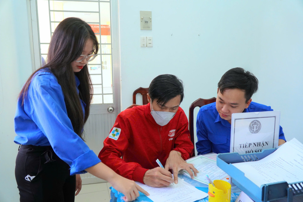 Đoàn viên, thanh niên hỗ trợ người dân trong việc điền biểu mẫu, xác minh thông tin cá nhân khi tiếp nhận giấy tờ