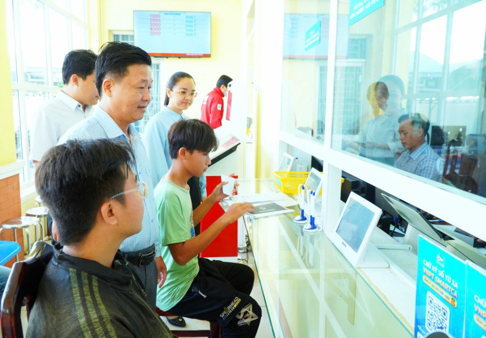 Lãnh đạo xã Phước Lý kiểm tra công tác vận hành Trung tâm Phục vụ hành chính công xã