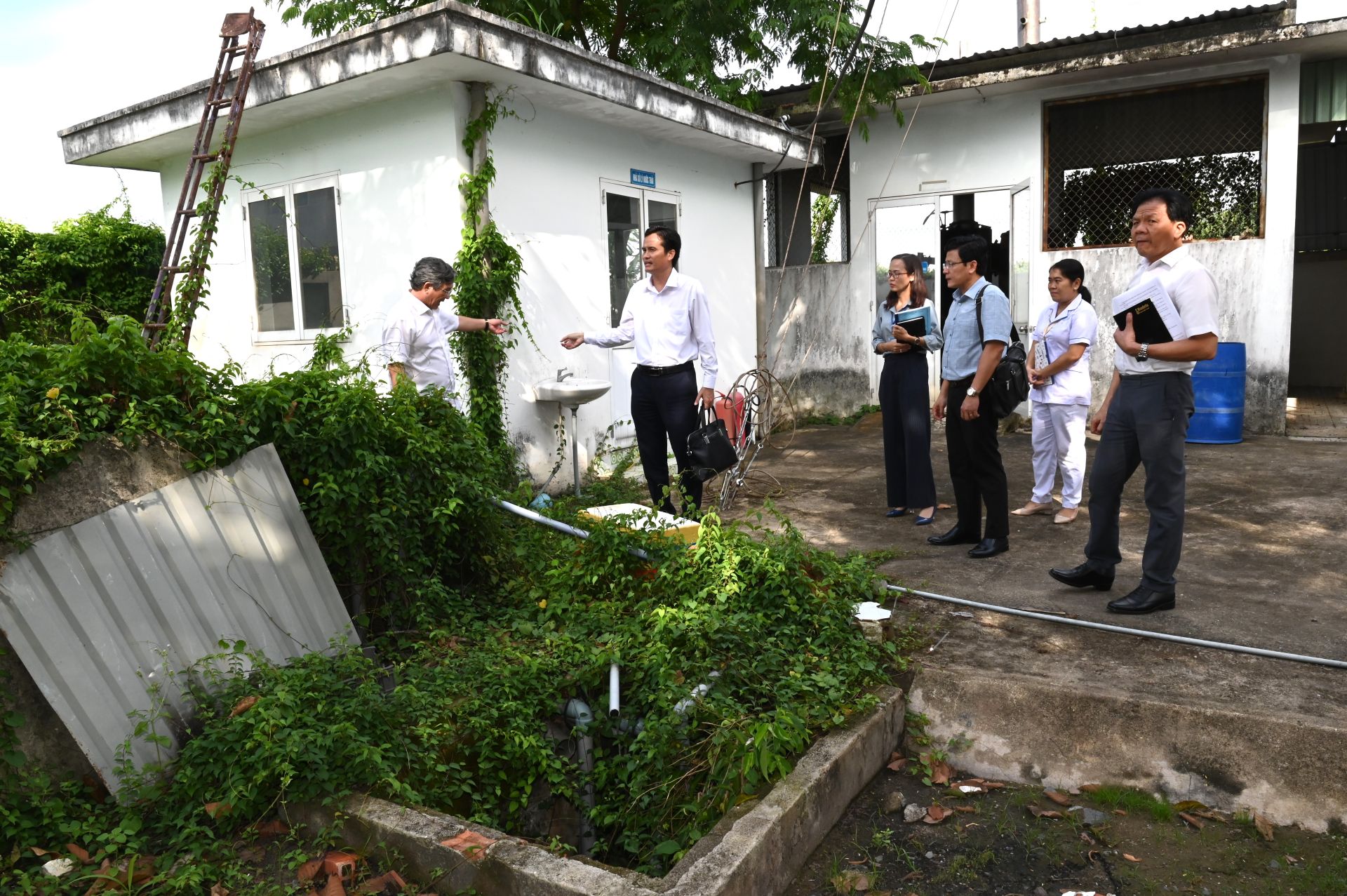 Đoàn công tác đến khảo sát hệ thống nước sạch của Trung tâm Y tế huyện Dương Minh Châu.