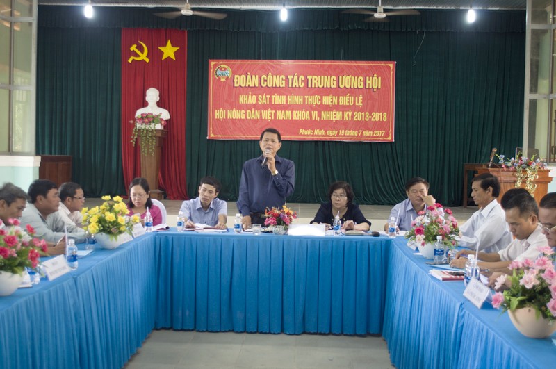 Ngày 19.7, đoàn cán bộ Trung ương Hội Nông dân Việt Nam do bà Bế Thị Yến- Trưởng ban Kiểm tra Trung ương Hội làm trưởng đoàn đã đến Tây Ninh để khảo sát tình hình thực hiện Điều lệ Hội ở xã Phước Ninh (huyện Dương Minh Châu).