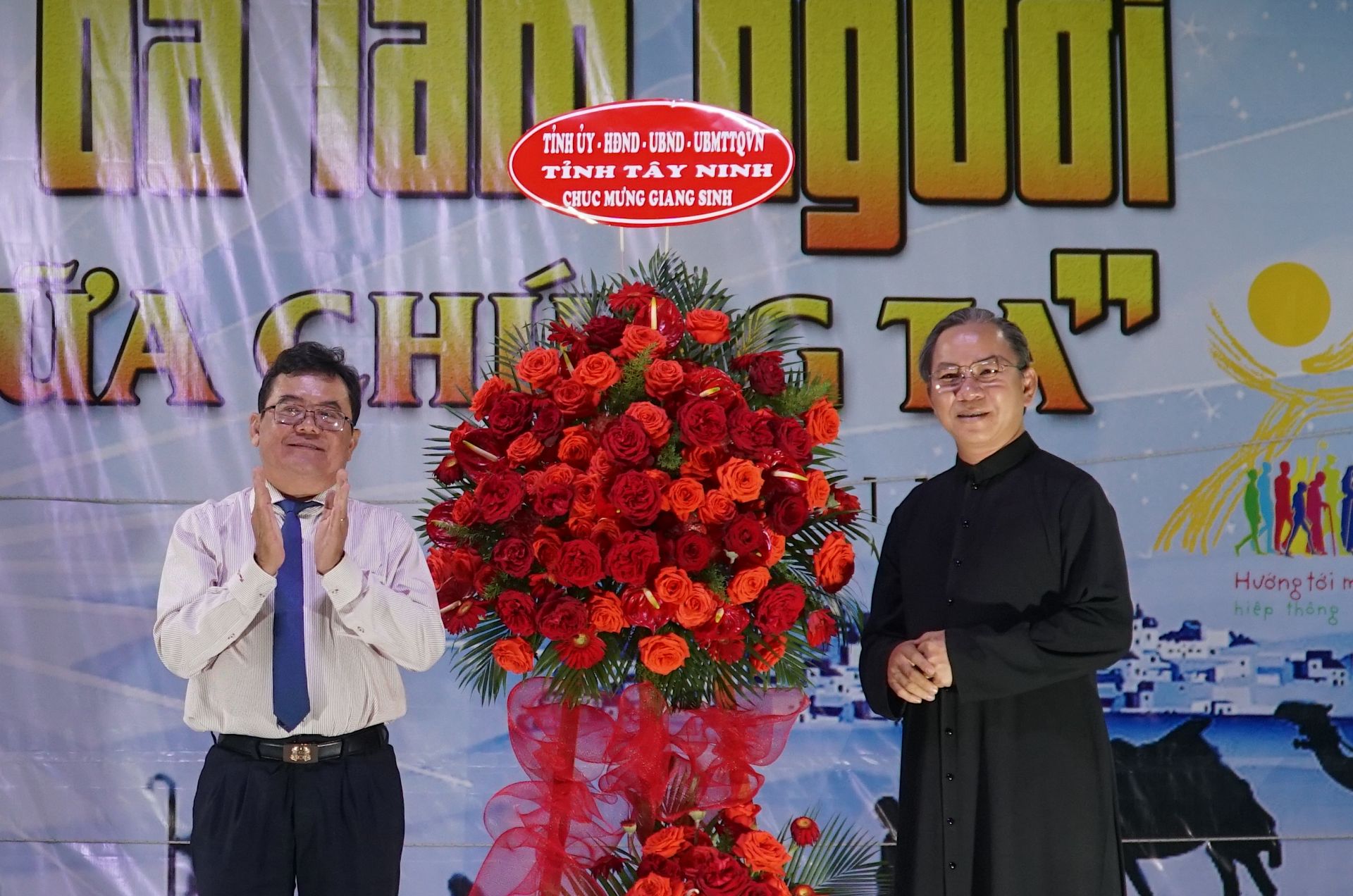 Trưởng Ban Dân vận Tỉnh uỷ Trương Nhật Quang tặng hoa chúc mừng đại lễ Giáng sinh Giáo xứ Tây Ninh năm 2022.