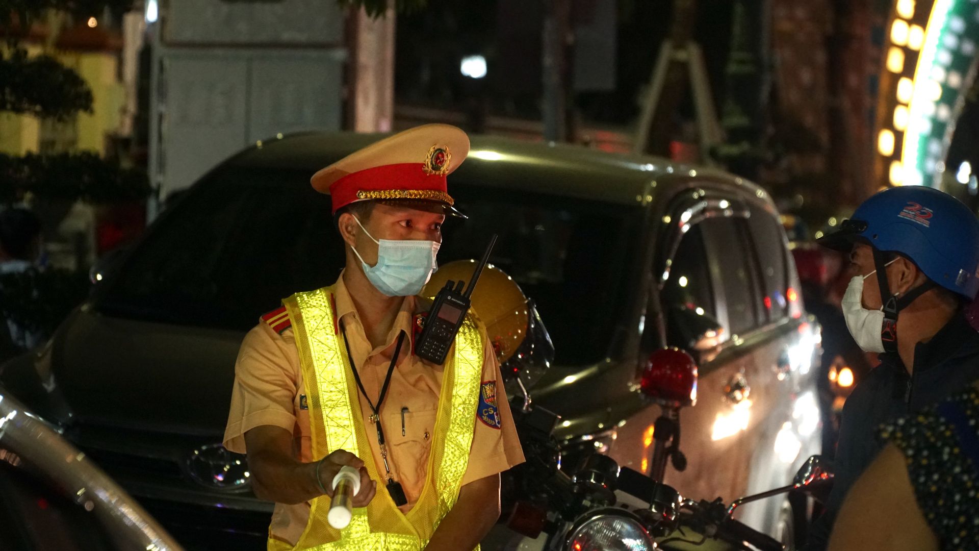 Lực lượng DQTV, CSGT Công an Thành phố Tây Ninh ra quân gin giữ trật tự trước khu vực Nhà thờ, nơi diễn ra đại lễ.