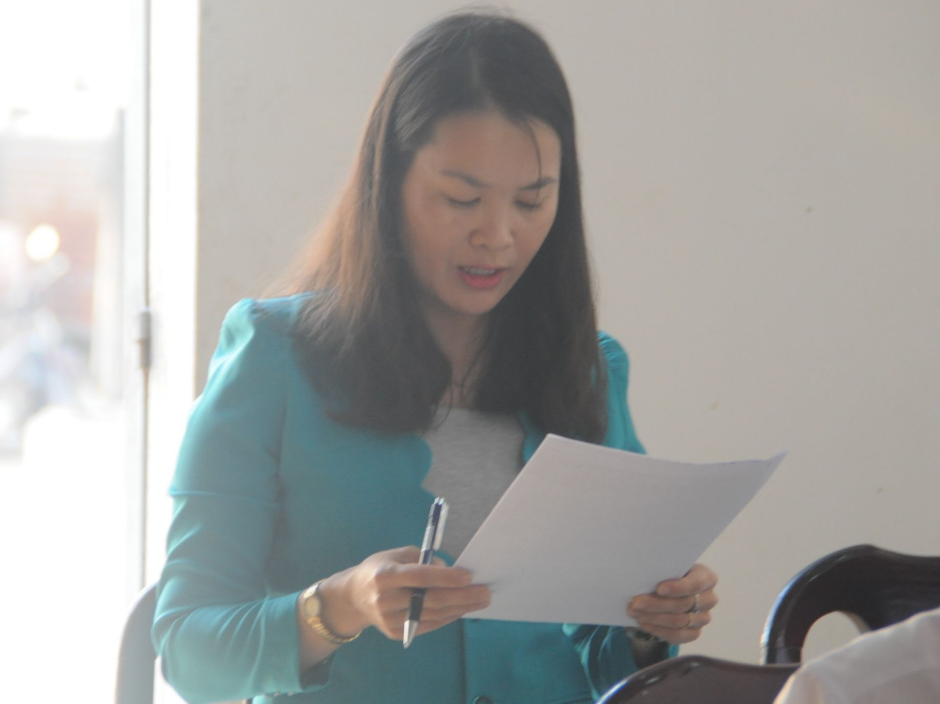 Bí thư Đảng ủy Phường Ninh Thạnh Nguyễn Thị Thanh Thúy báo cáo về tình hình hoạt động của Phường tại buổi làm việc.