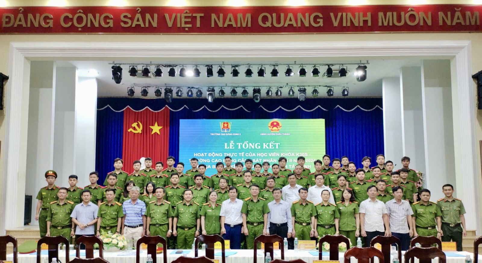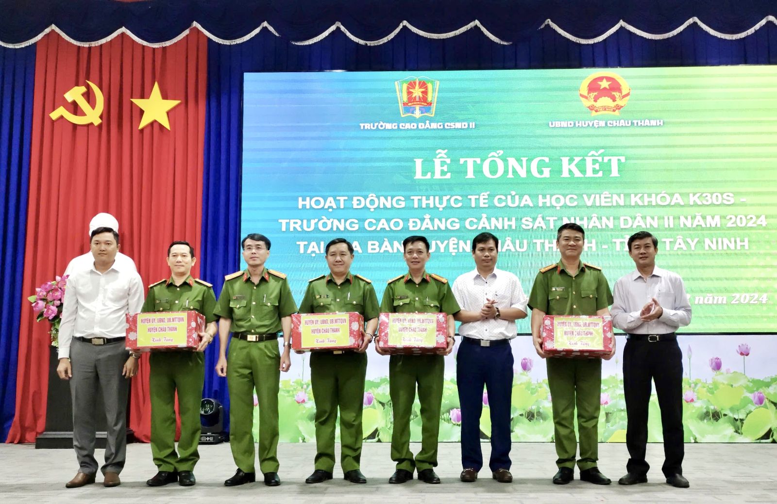 Ngày 24.12, UBND huyện Châu Thành phối hợp Trường Cao đẳng Cảnh sát nhân dân II tổ chức lễ tổng kết hoạt động thực tế của học viên khoá K30S tại địa bàn huyện Châu Thành năm 2024.