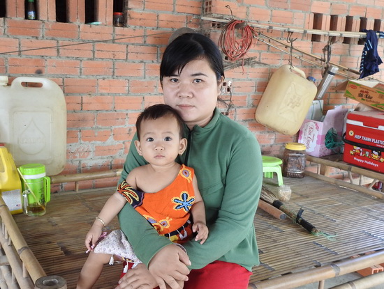 Chị Tuyền cùng con nhỏ tại nhà riêng.