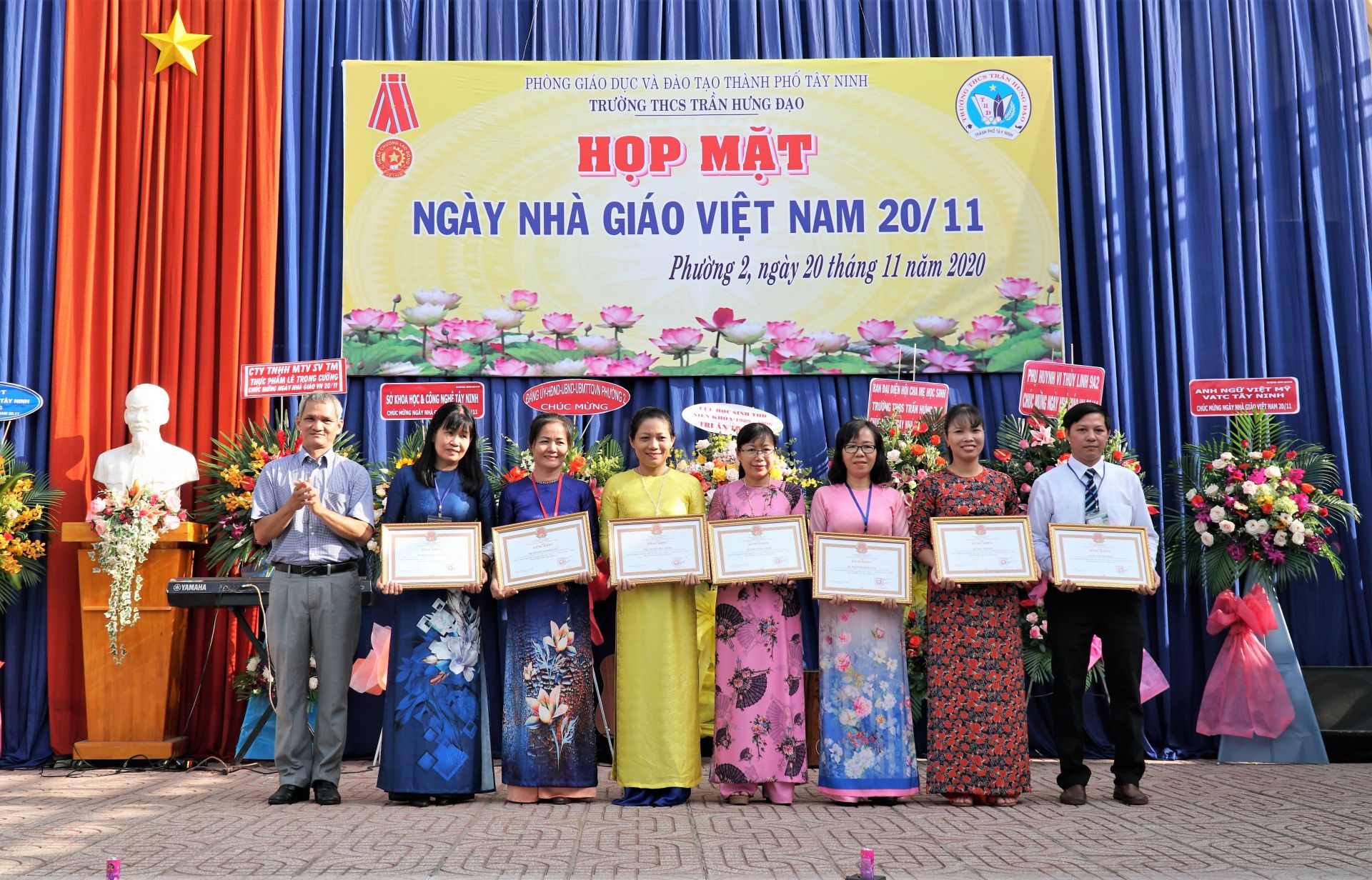 Nhân dịp này, UBND tỉnh đã trao tặng Bằng khen cho 7 giáo viên vì đã có thành tích hoàn thành xuất sắc nhiệm vụ 2 năm liền; UBND thành phố Tây Ninh công nhận danh hiệu Chiến sĩ cơ sở cho 11 cán bộ giáo viên nhà trường. Ban Giám hiệu nhà trường cũng tặng hoa chúc mừng các thầy giáo, cô giáo đã về hưu trong ngày kỷ niệm.