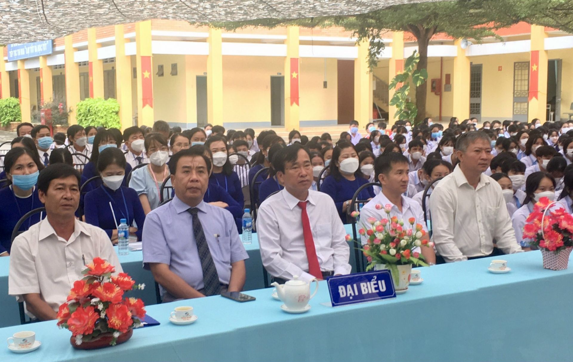 Tham dự có ông Nguyễn Văn Nhu- Chủ tịch UBND huyện Gò Dầu, cùng lãnh đạo xã Bàu Đồn, thầy cô giáo và gần 1.000 học sinh của trường.