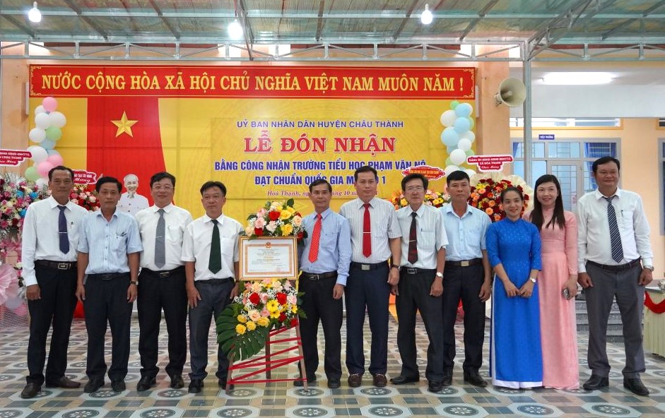 Chiều 3.10, trường Tiểu học Phạm Văn Nô, xã Hoà Thạnh, huyện Châu Thành tổ chức lễ đón nhận bằng công nhận trường đạt chuẩn quốc gia mức độ I. Đến dự có ông Bùi Tuấn Hải- Phó Giám đốc Sở Giáo dục và Đào tạo; ông Thân Văn Nhân- Phó Bí thư Thường trực Huyện uỷ; ông Đỗ Thành Trung- Phó Chủ tịch UBND huyện.