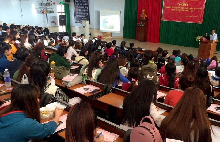 Quang cảnh buổi truyền thông phòng chống tác hại của thuốc lá cho sinh viên trường CĐSP Tây Ninh.