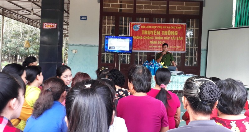 Chiều 26.11, tại ấp Khởi Nghĩa (xã Cầu Khởi), Hội Liên hiệp phụ nữ huyện Dương Minh Châu phối hợp với Công an huyện tổ chức buổi truyền thông phòng, chống tội phạm trộm cắp tài sản cho hội viên phụ nữ và nữ công nhân Nông trường Cao su Cầu Khởi (thuộc Công ty Cao su Tây Ninh).