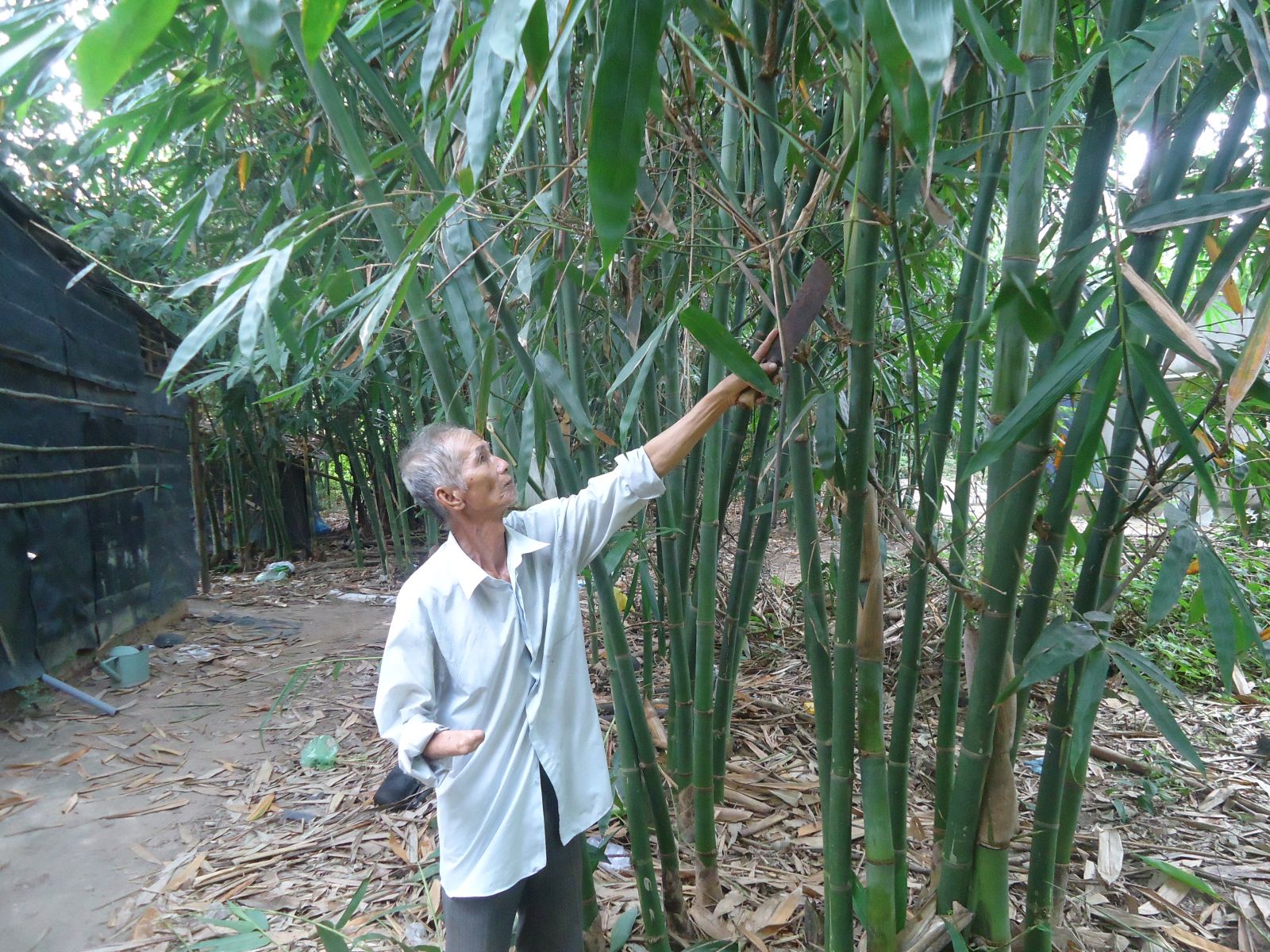 Hằng ngày, ngoài những lúc làm thuê, ông dành thời gian chăm sóc tre. Ðến mùa, thu hoạch măng tre đem bán, ômg kiếm được vài chục ngàn đồng mỗi ngày. Lá tre thì đem bán cho người ta gói bánh ú, kiếm thêm một ít thu nhập.