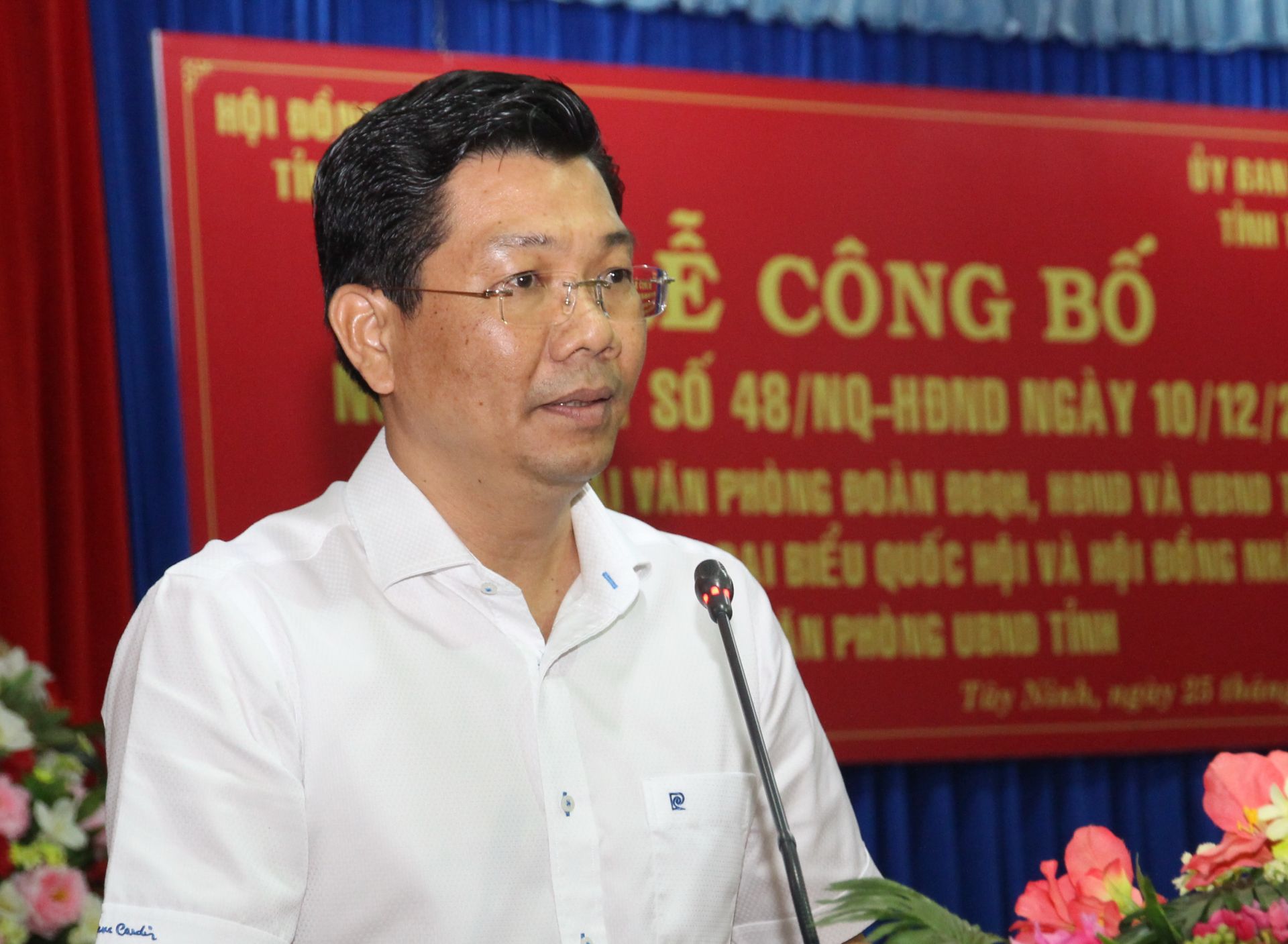 Phát biểu tại buổi lễ công bố, Phó Chủ tịch thường trực UBND tỉnh Nguyễn Mạnh Hùng gửi lời chúc mừng đến các cán bộ, công chức, người lao động khi Văn phòng được tổ chức, sắp xếp lại sau thời gian thực hiện mô hình thí điểm hợp nhất 3 Văn phòng. Việc sắp xếp lại là cơ hội để các cán bộ của Văn phòng thực hiện đúng chức năng, nhiệm vụ, vai trò của cơ quan giám sát và cơ quan quản lý điều hành.