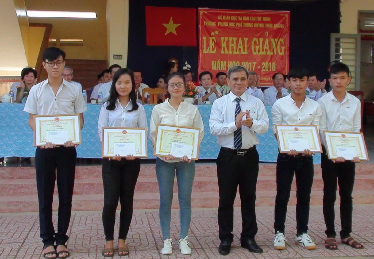 Dịp này, UBND huyện Bến Cầu đã trao giấy khen cho các tập thể và cá nhân có thành tích xuất sắc trong năm học 2016-2017. Đại diện Ngân hàng Sài Gòn Thương Tín Chi nhánh Tây Ninh cũng đã trao 13 suất học bổng “Sacombank-Ươm mầm cho những ước mơ” cho các em học sinh nghèo học giỏi của Trường THPT Huỳnh Thúc Kháng, mỗi suất trị giá 1 triệu đồng.