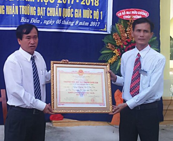 | Trao bằng công nhận đạt chuẩn quốc gia mức độ 1 cho Trường tiểu học Ấp 3 Bàu Đồn. |