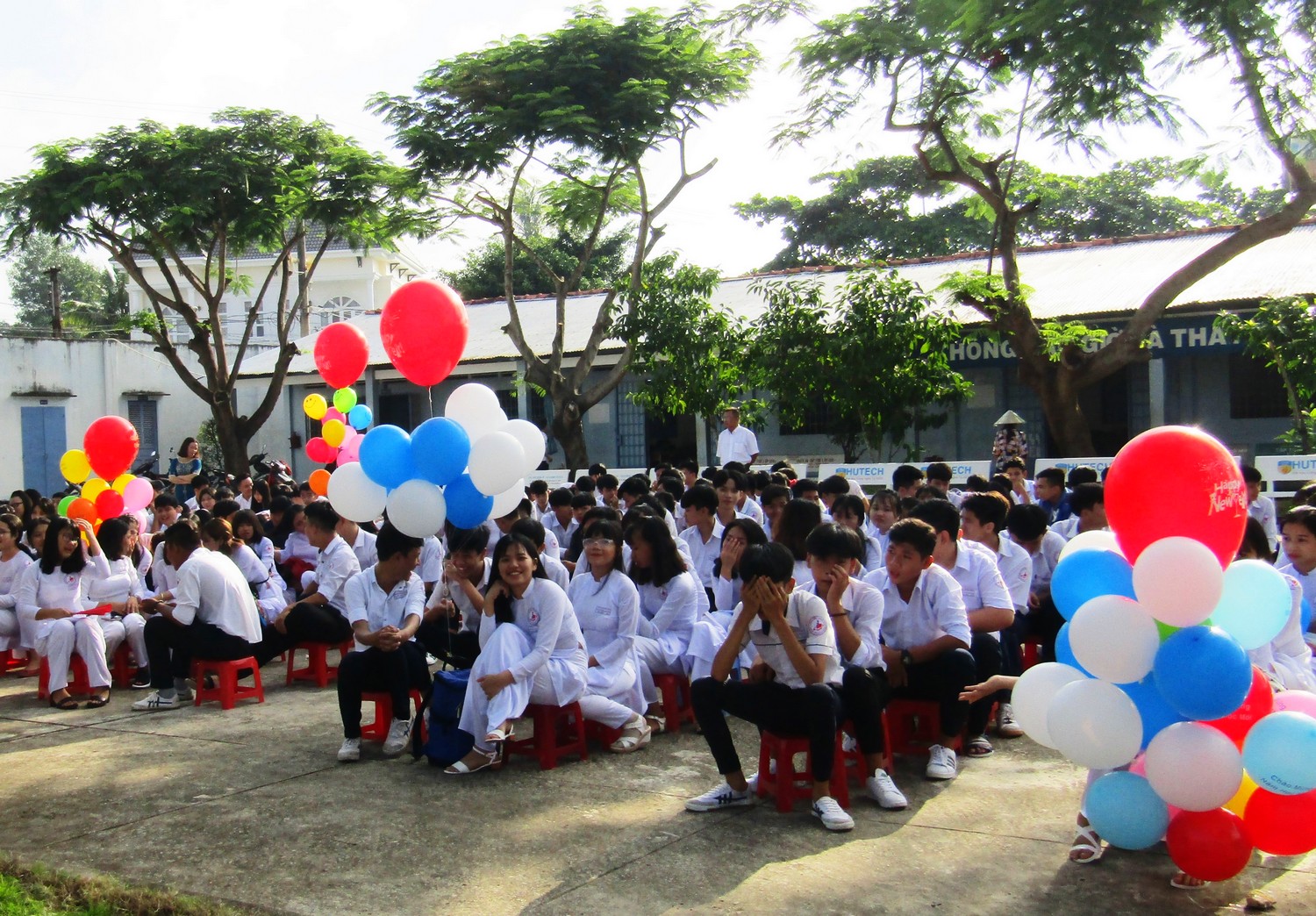 Tại buổi lễ khai giảng, Hội Khuyến học tỉnh đã trao 20 suất học bổng, mỗi suất trị giá 500.000 đồng cho các em học sinh có hoàn cảnh khó khăn của trường; nhà trường khen thưởng các em học sinh đậu đại học từ 22 điểm trở lên; Công ty XNK Bình Tân (TP.HCM) tặng máy tính cầm tay cho các học sinh hoàn cảnh khó khăn.