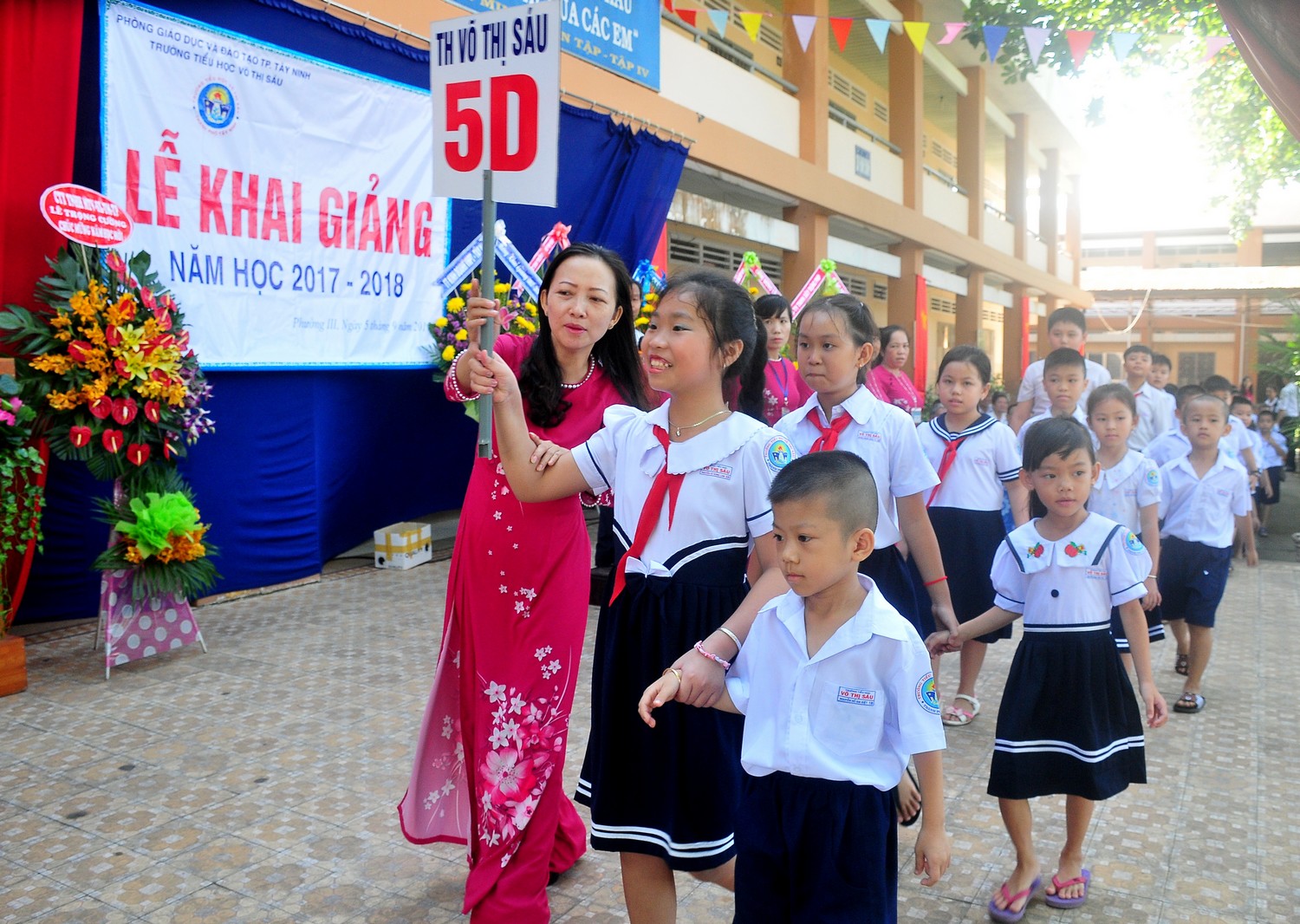 * Tại Gò Dầu, 56 điểm trường từ mầm non đến THPT trên địa bàn huyện đồng loạt tổ chức khai giảng năm học mới 2017-2018.