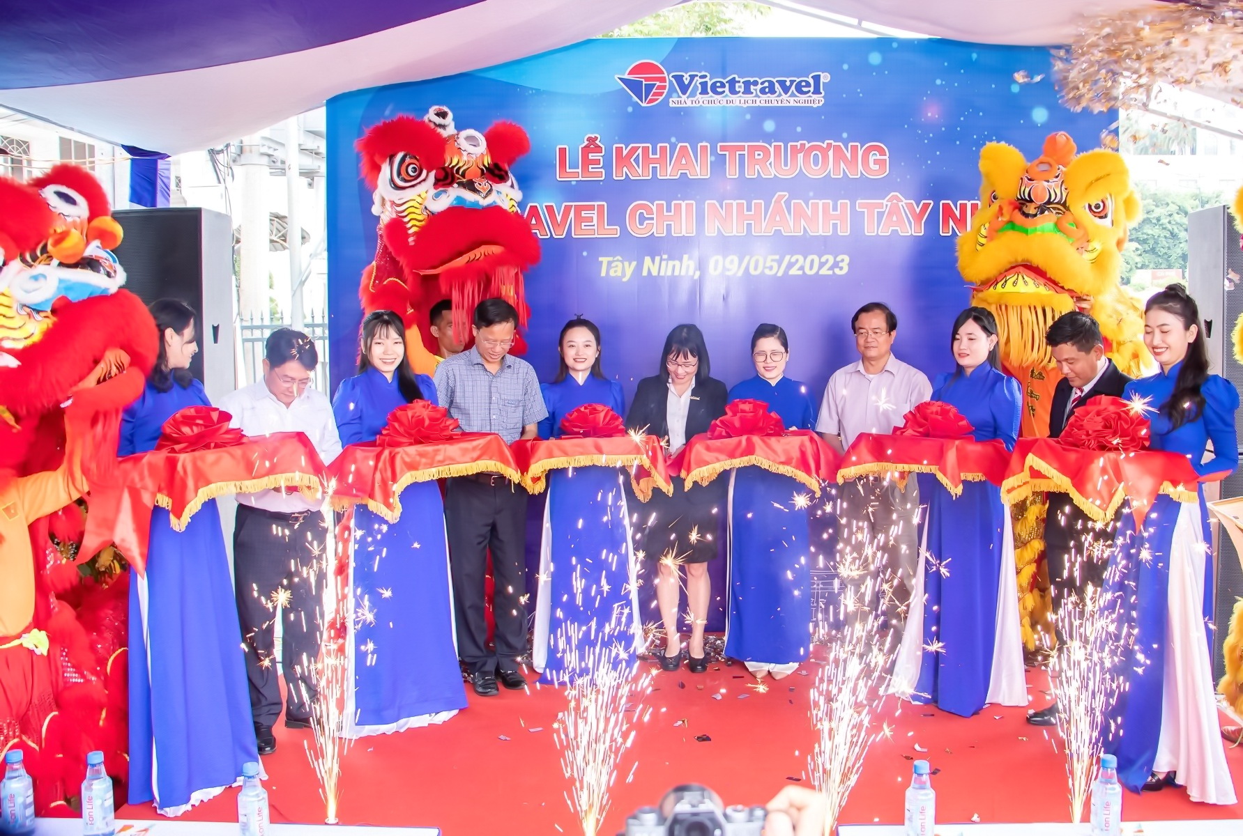Đại biểu cắt băng khai trương Chi nhánh Vietravel Tây Ninh.