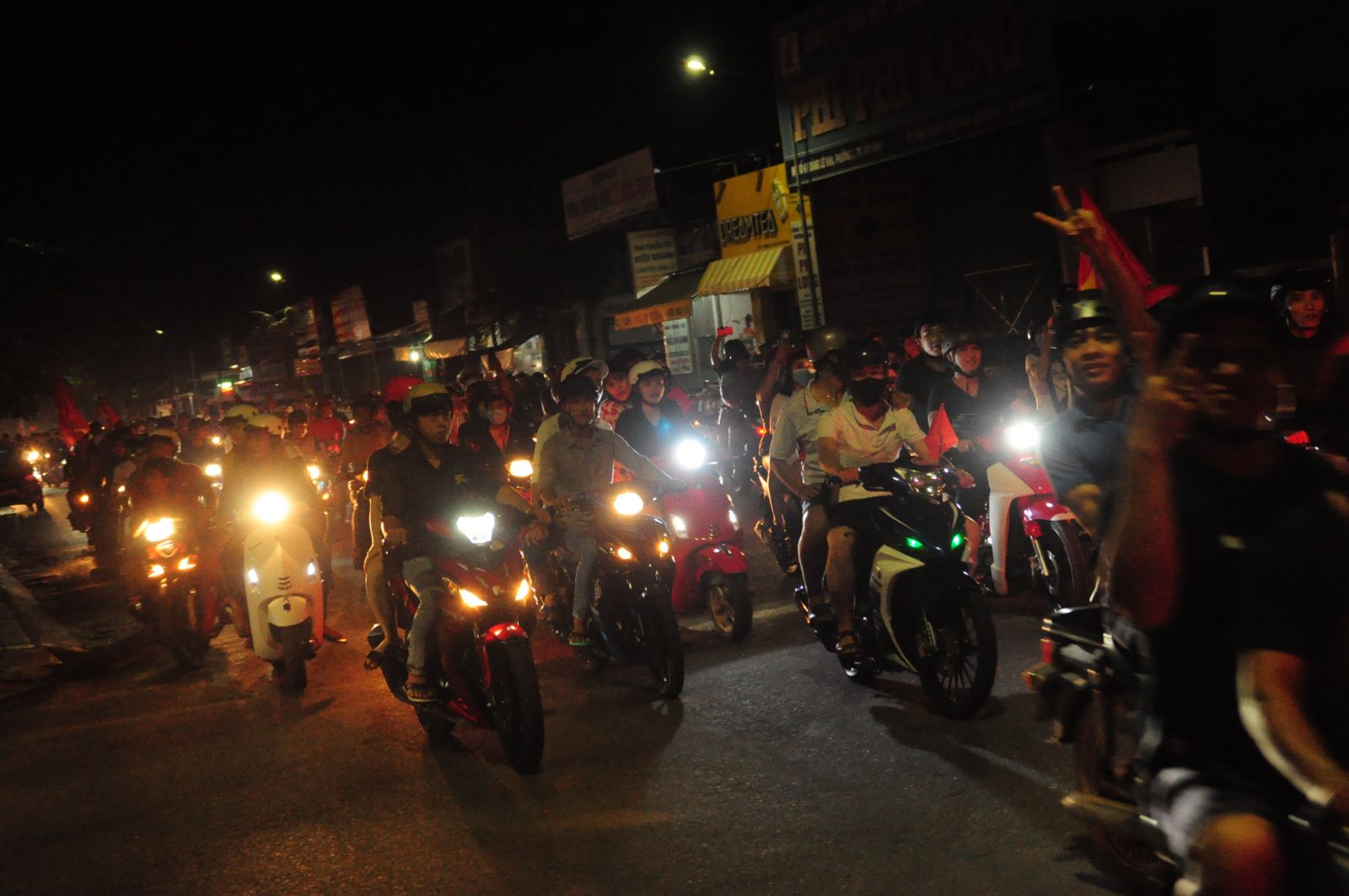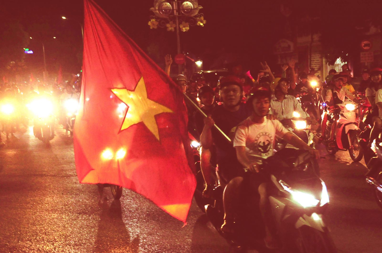 Sau trận thắng nghẹt thở của đội tuyển Olympic Việt Nam trước Syria vào tối 27.8, dù đã hơn 22 giờ nhưng hàng ngàn người dân Tây Ninh vẫn đổ ra đường để ăn mừng chiến thắng.