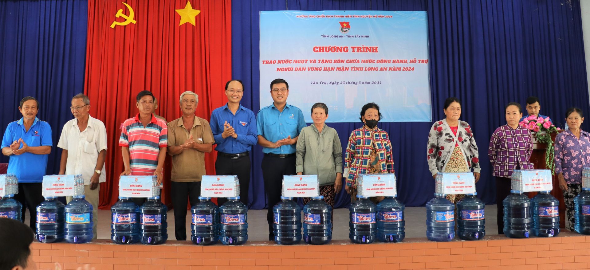 Tại tỉnh Long An, đoàn do anh Trần Đăng Tiến- Phó Bí thư Tỉnh đoàn, Chủ tịch Hội LHTN Việt Nam tỉnh làm trưởng đoàn đã đến xã Nhựt Ninh, huyện Tân Trụ trao tặng 519 bình nước uống loại 21 lít, 92 lốc nước uống loại 500ml, 2 bồn chứa nước loại 2.000 lít, 4 bồn chứa nước loại 1.000 lít và 20 triệu đồng. Tổng trị giá nguồn lực hỗ trợ là 100 triệu đồng.