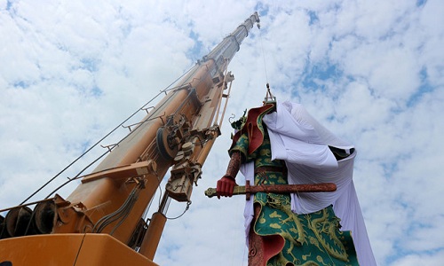 Tượng Quan Vũ cao 30 mét bị che lại. Ảnh: Reuters |