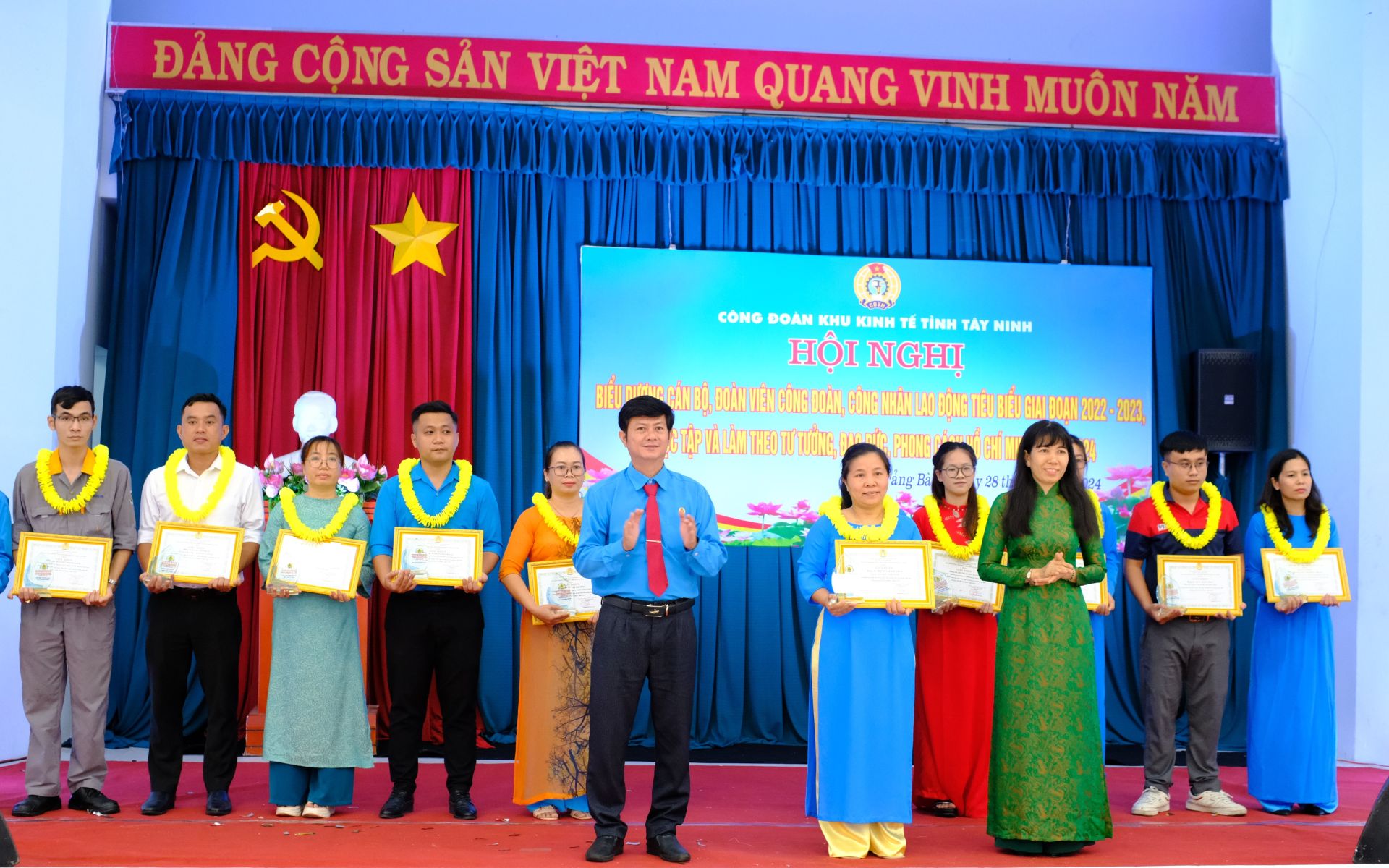 Ngày 28.5, tại Khu công nghiệp Trảng Bàng, Công đoàn Khu kinh tế Tây Ninh tổ chức hội nghị biểu dương cán bộ, đoàn viên công đoàn, công nhân lao động giai đoạn 2022 - 2023, “Học tập và làm theo tư tưởng, đạo đức, phong cách Hồ Chí Minh” năm 2024.