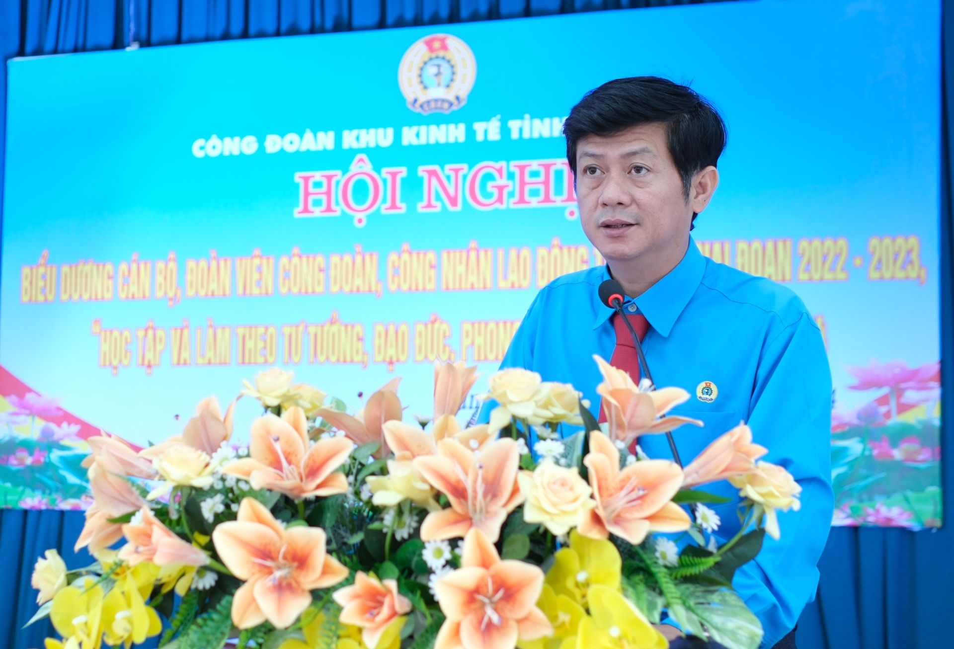 Phát biểu tại hội nghị, ông Trần Lê Duy- Chủ tịch Liên đoàn Lao động tỉnh biểu dương kết quả đạt được của Công đoàn Khu kinh tế, các CĐCS trực thuộc và cán bộ, đoàn viên công đoàn, công nhân lao động được biểu dương khen thưởng và các cá nhân có thành tích xuất sắc trong “Học tập và làm theo tư tưởng, đạo đức, phong cách Hồ Chí Minh” năm 2024.