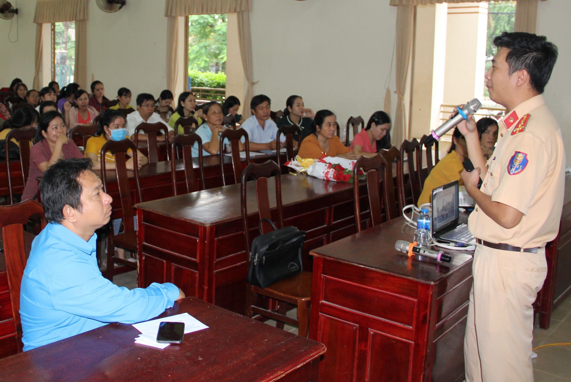 Các đại biểu tham dự được nghe Đại úy Nguyễn Tuấn Anh, cán bộ Phòng Cảnh sát giao thông-CATN thông tin về tình hình TTATGT trên địa bàn tỉnh trong những tháng đầu năm 2019 và các nguyên nhân dẫn đến tai nạn giao thông …