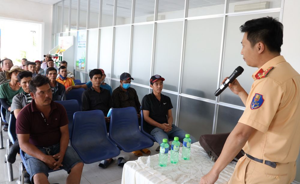 Tại đây, các lái xe đã được nghe Đại úy Nguyễn Tuấn Anh-cán bộ Đội Tuyên truyền Phòng Cảnh sát giao thông tỉnh thông tin về tình hình TTATGT trên địa bàn tỉnh trong năm 2020, các nguyên nhân dẫn đến tai nạn giao thông, hậu quả của tai nạn giao thông và tuyên truyền về đạo đức của lái xe trong quá trình tham gia giao thông,…