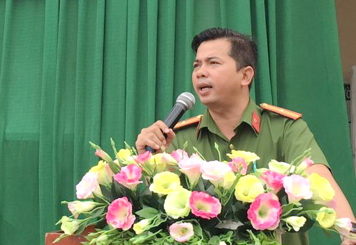 Cán bộ Phòng Cảnh sát Hình sự tuyên truyền về nguyên nhân dẫn đến bạo lực học đường.