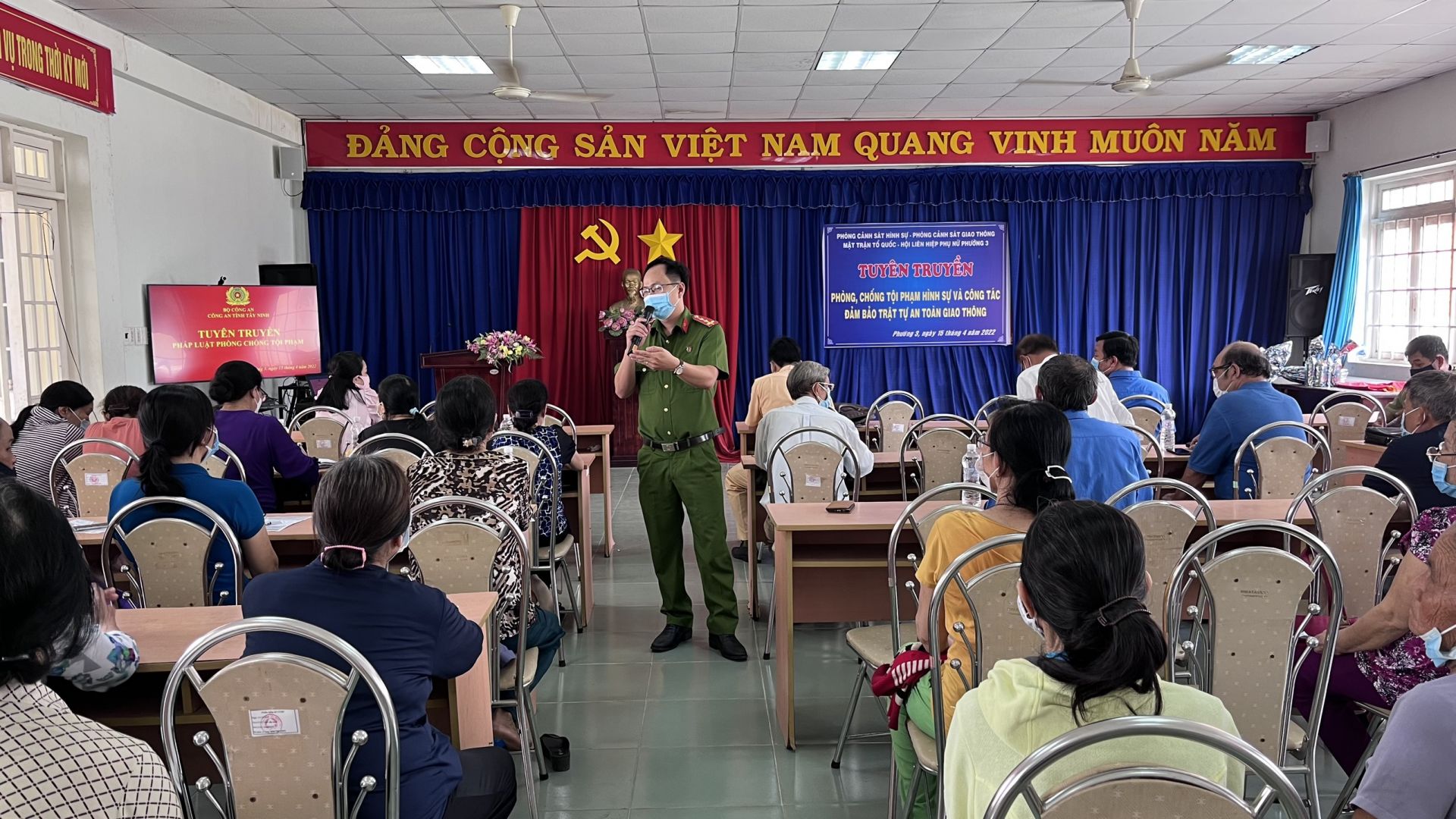 Ngày 15.4, Phòng Cảnh sát Hình sự, Phòng Cảnh sát giao thông Công an tỉnh phối hợp với MTTQ, Hội LHPN phường 3 (thành phố Tây Ninh) tổ chức buổi tuyên truyền phòng chống tội phạm hình sự và công tác bảo đảm trật tự an toàn giao thông cho người dân địa phương.