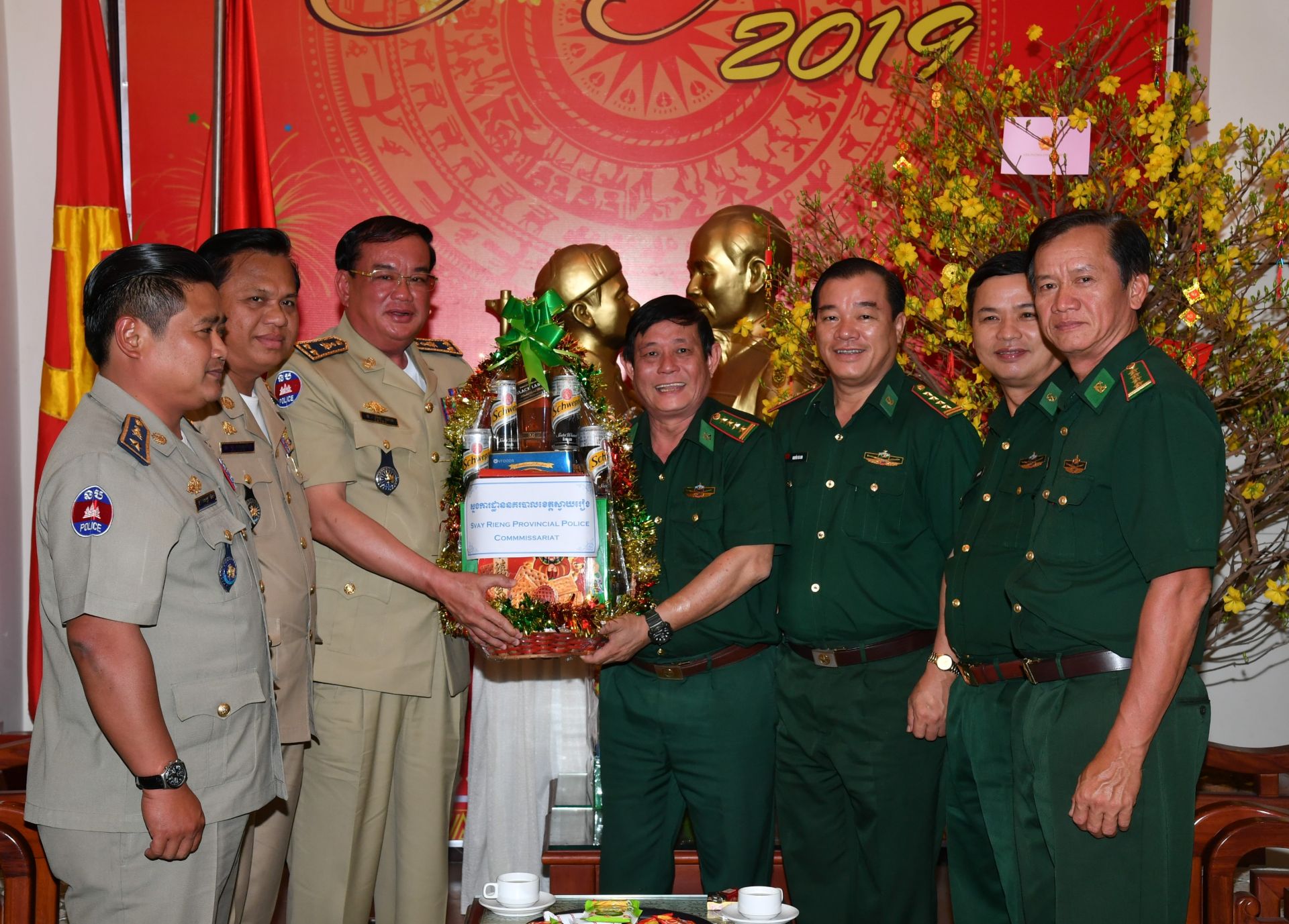 Nhân tết cổ truyền của Việt Nam, ngày 31.1.2019, các tướng lĩnh thuộc Ty Công an tỉnh Svay Rieng, Vương quốc Campuchia do Trung tướng Kang Khol làm trưởng đoàn đã đến thăm hỏi, tặng quà và chúc tết BĐBP tỉnh Tây Ninh.
