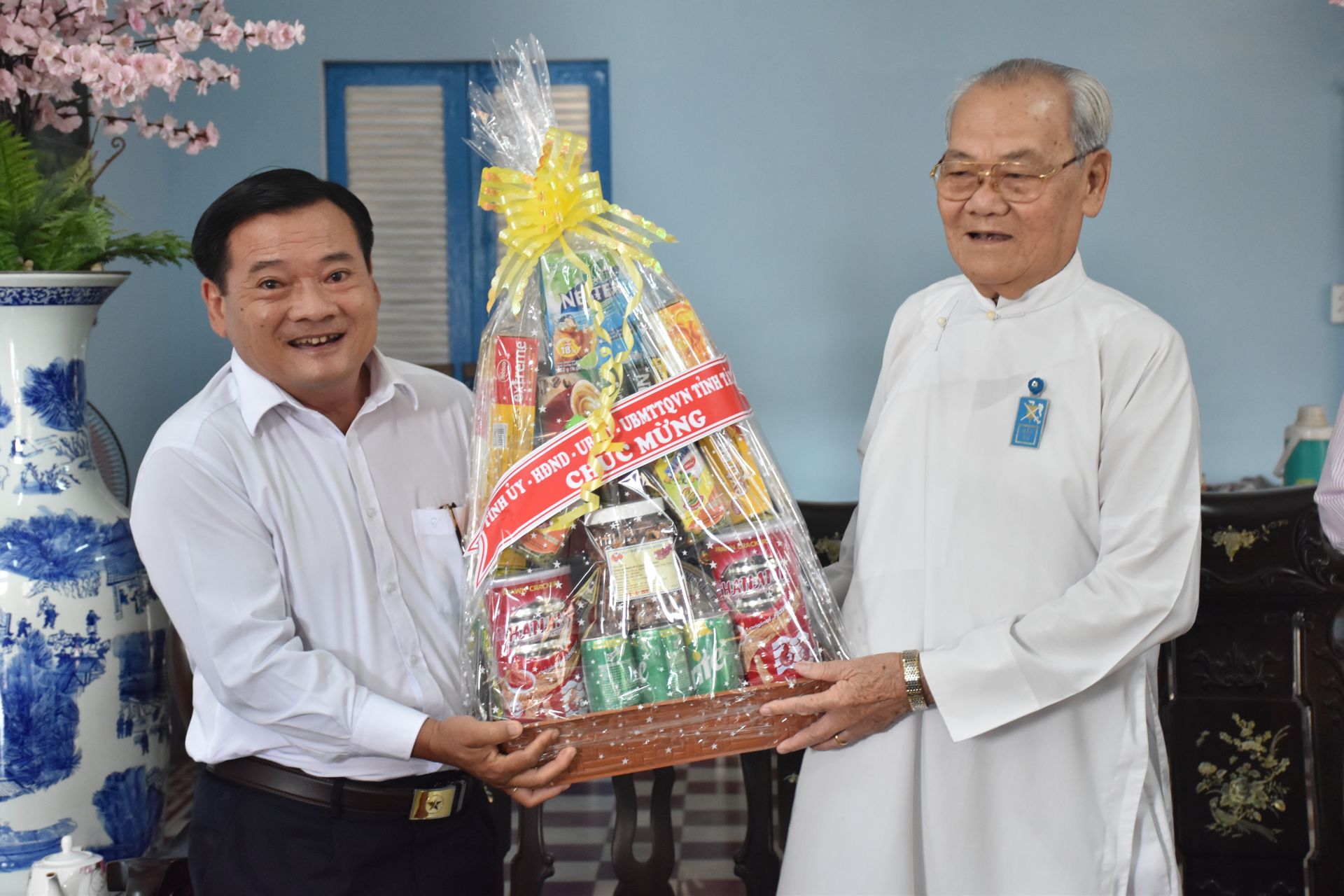 Chủ tịch UB.MTTQ Việt Nam tỉnh Tây Ninh Nguyễn Văn Hợp tặng quà chúc mừng Hội thánh Cao Đài Tòa thánh Tây Ninh.